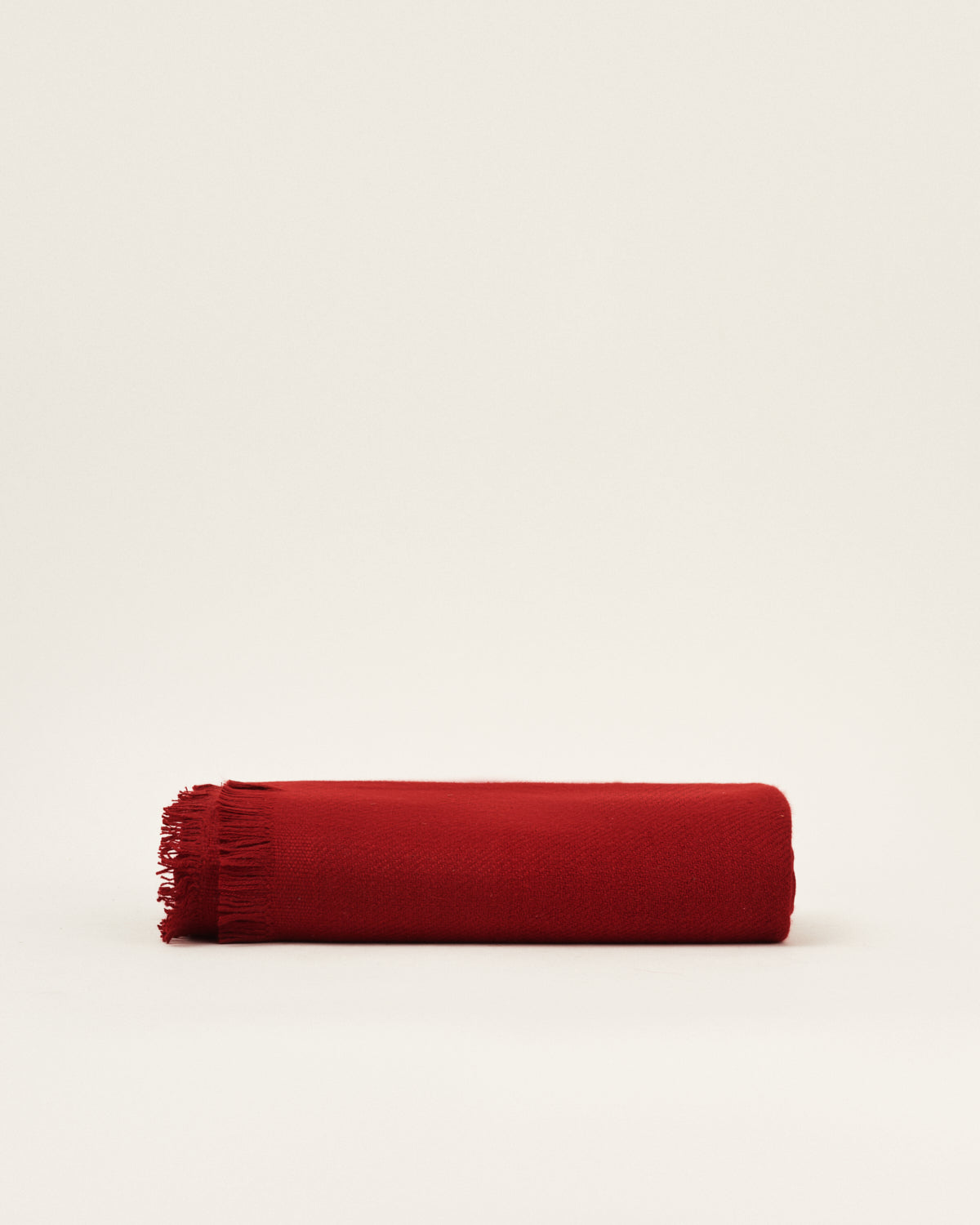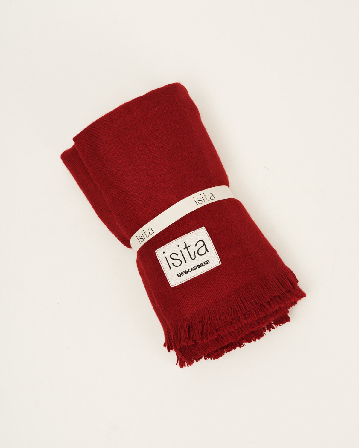This soft cashmere blanket is made in India by women and hand-dyed with natural pigments. They take over three months to make. The fully artisanal production process is carried out in a small workshop in Srinagar, in the Kashmir Valley on the banks of the Jhelum River. There, they have been working with this exclusive wool for five generations. The quality of the fibre, from the Ladakh region, is the best in the world with an average grade of 14 microns. The blankets come in six bright and timeless colours, all finished with a fringe border, a modern classic to embrace and be embraced with.