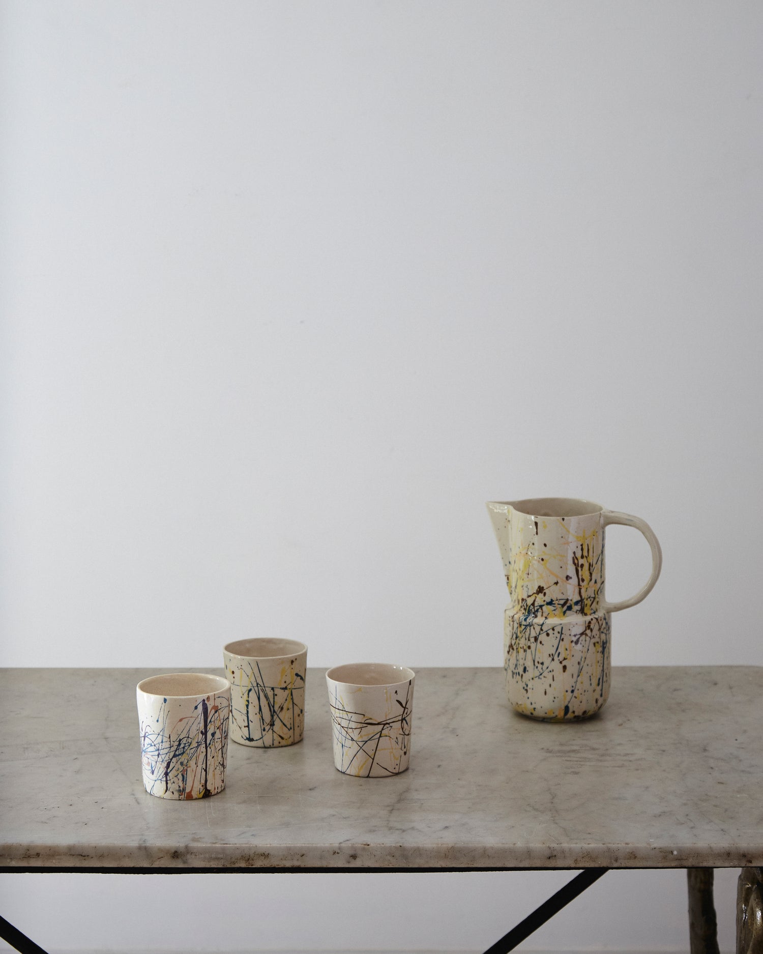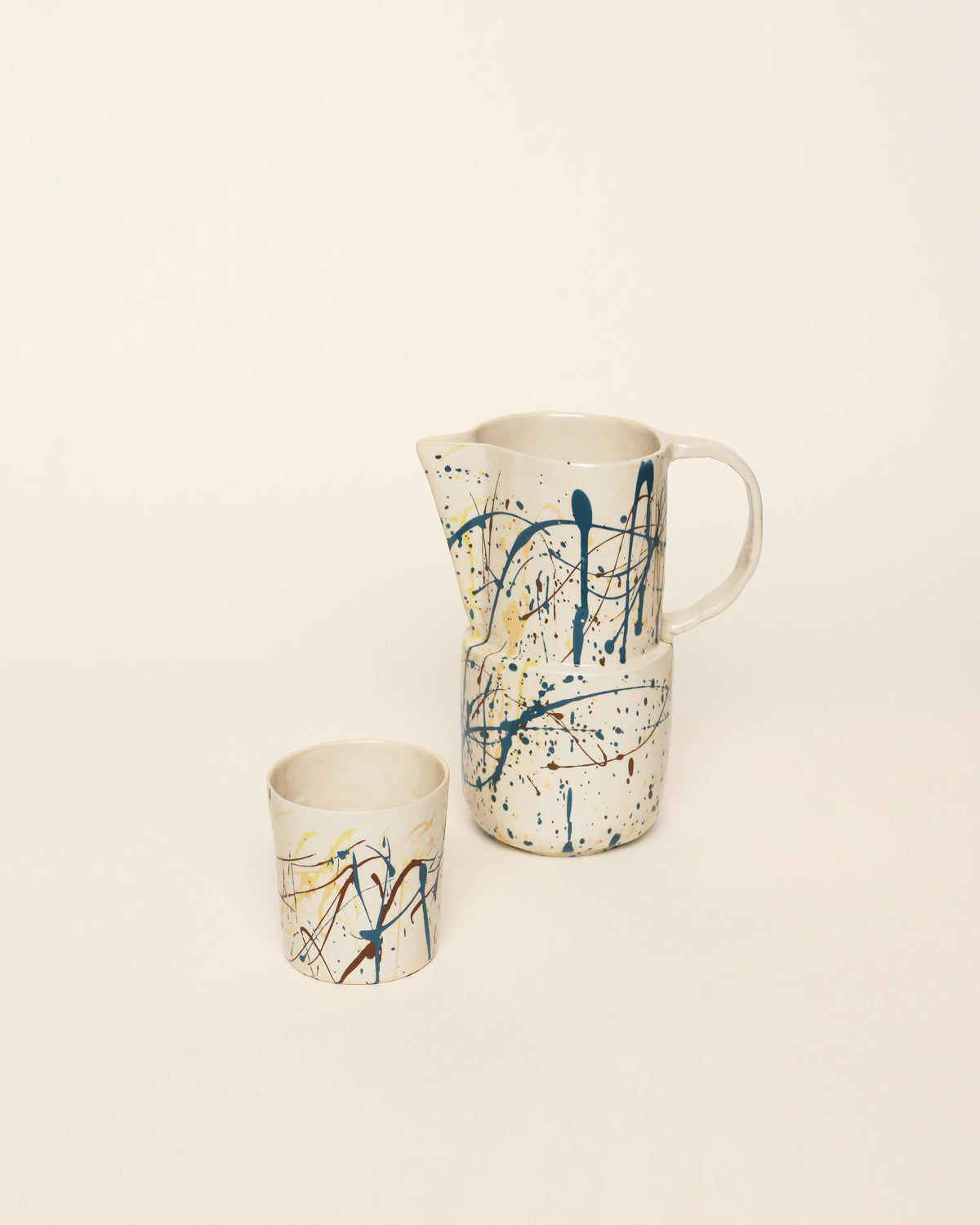 Handmade and hand-painted in Madrid, our jug is inspired by the American artist Jackson Pollock, in shades of blue and brown.