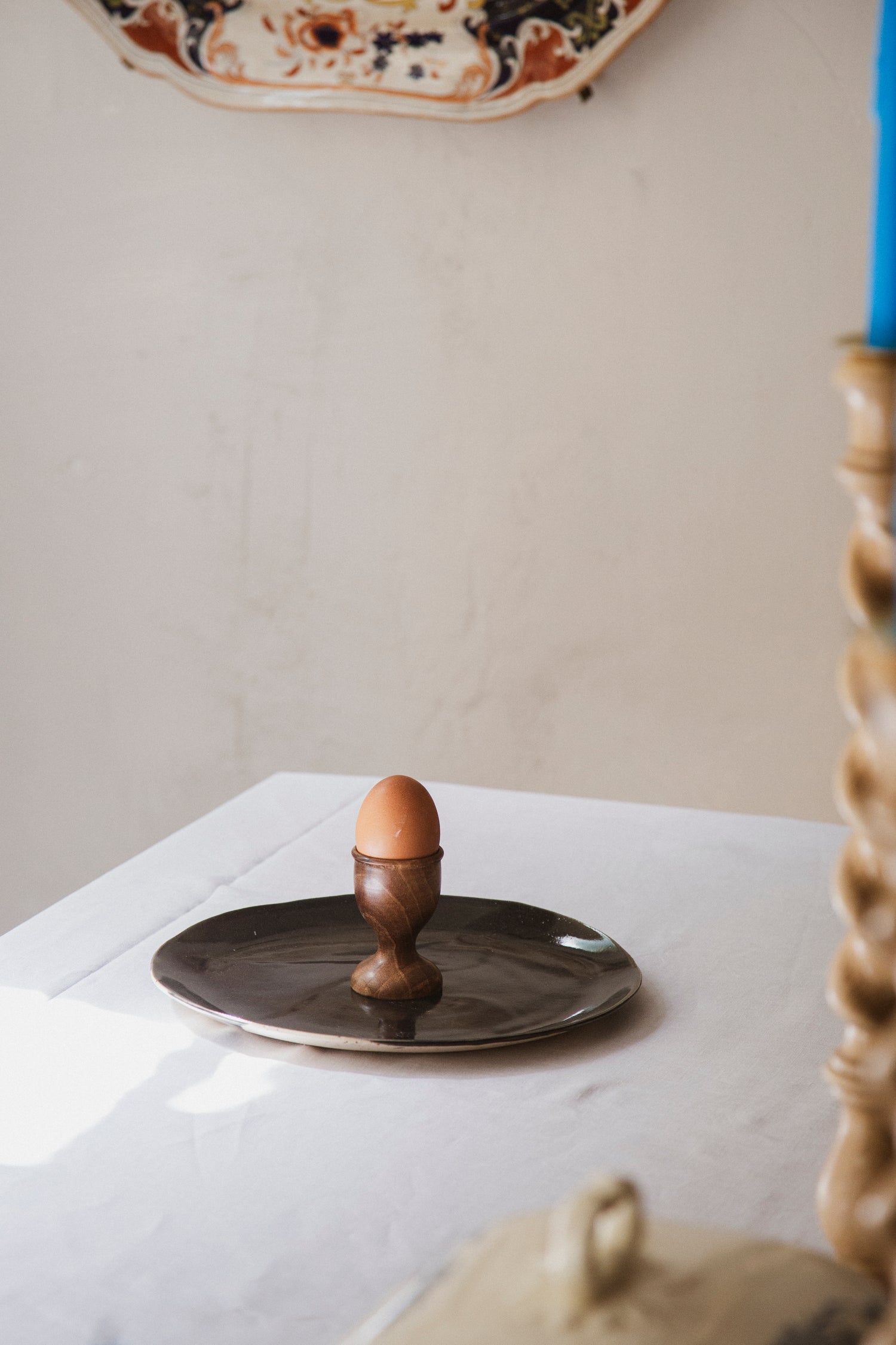 Egg cup made of Spanish walnut wood, hand-turned and treated with mineral oil for food use by Pablo Yubero.