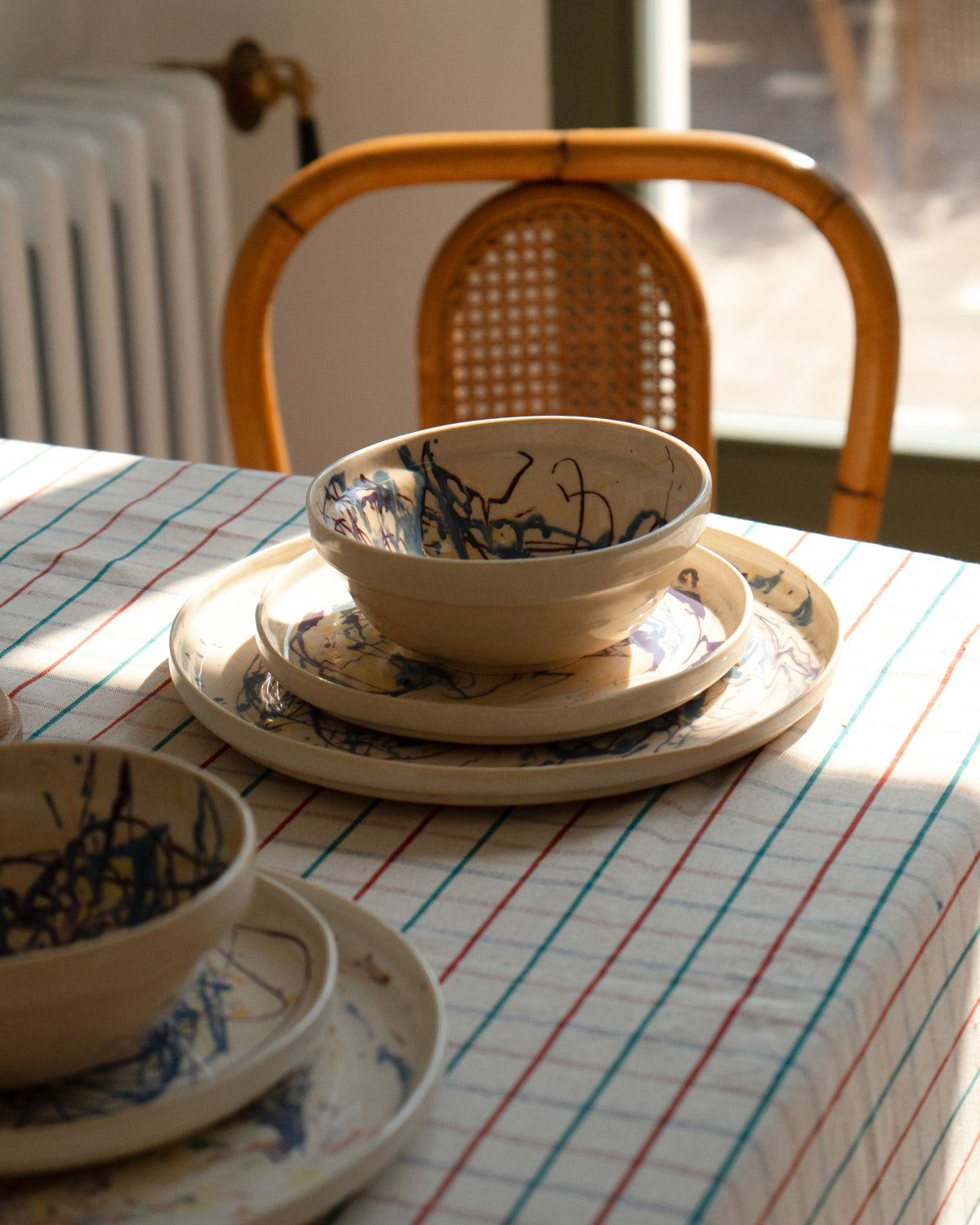 Handmade and hand painted in Madrid, our bowls are inspired by the American artist Jackson Pollock, in shades of blue and brown.