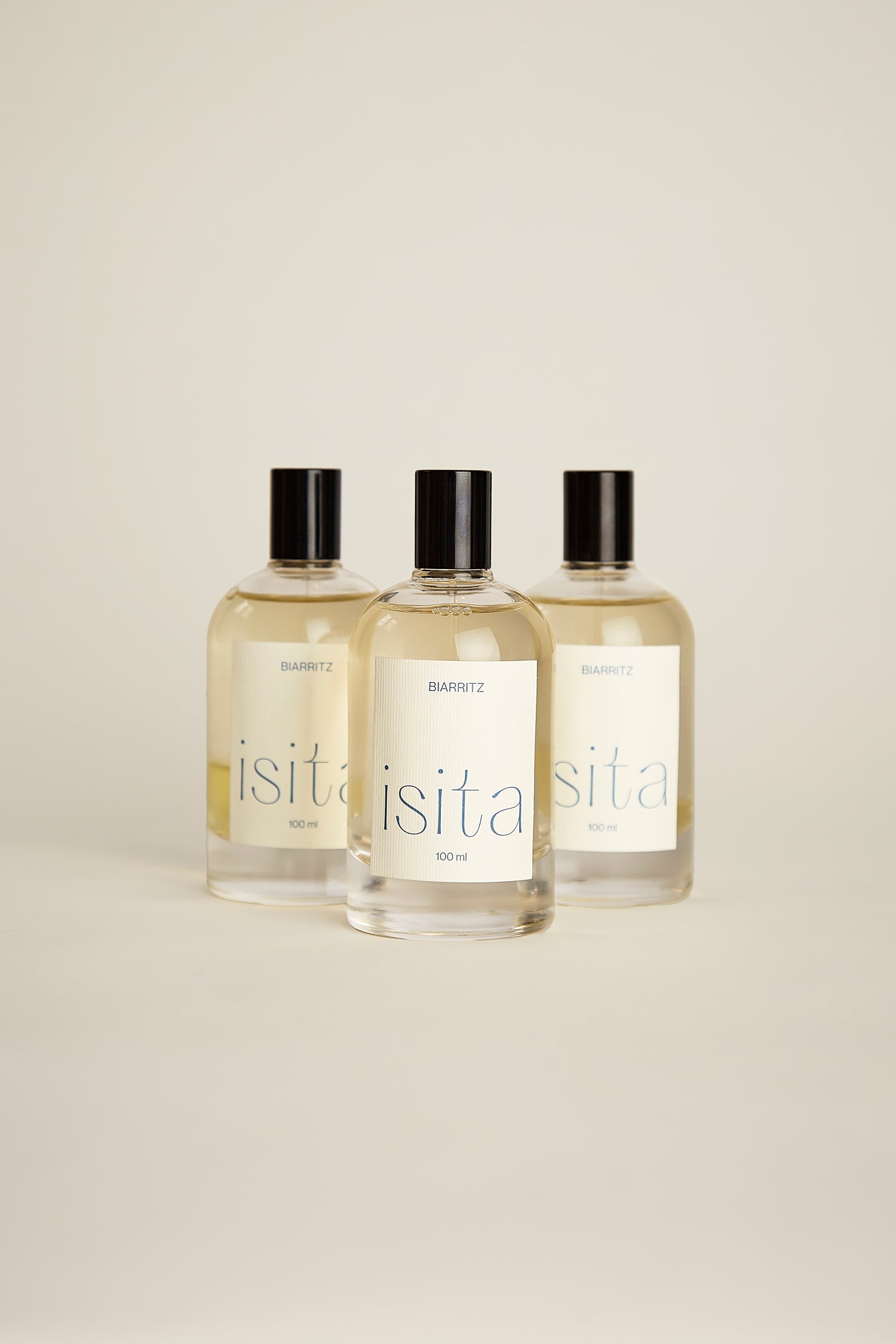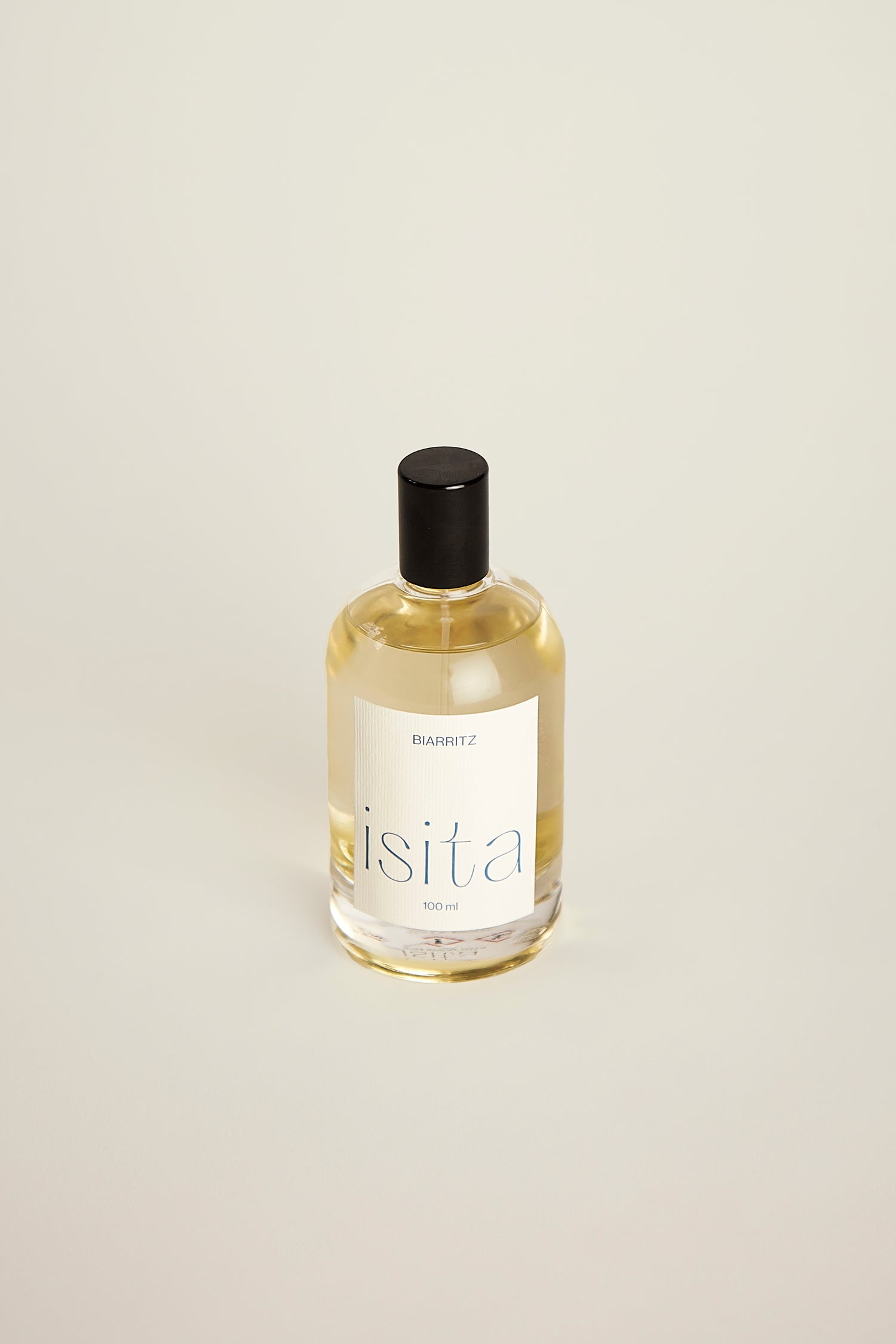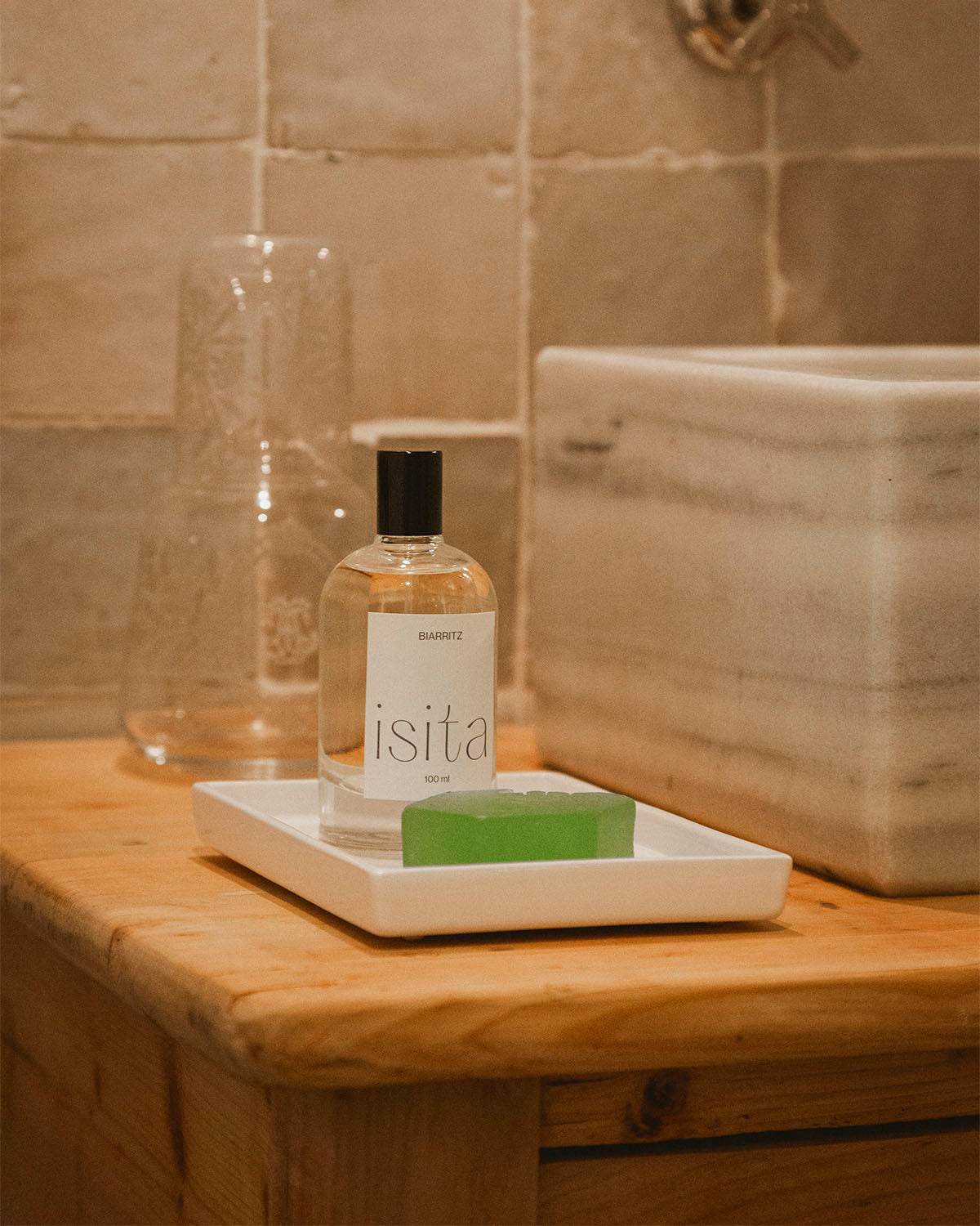 Tras Isita, la fragancia inspirada en el estudio de Isabel en Madrid que encarna la intimidad y la frescura de un cuidado patio de piedra enmarcado por ventanas de hierro negro, Biarritz representa el espíritu de la emblemática cabaña de Isabel en Biarritz.