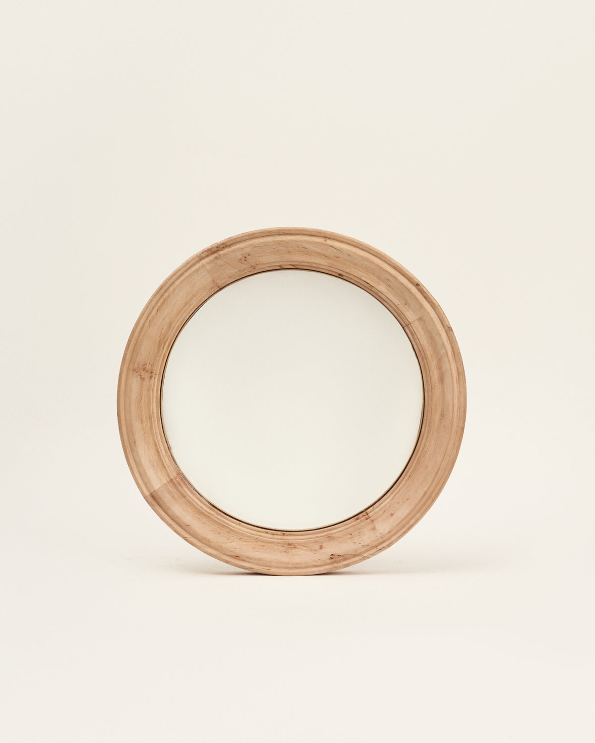 Espejo redondo convexo con marco de madera de haya de la segunda mitad del siglo XX.