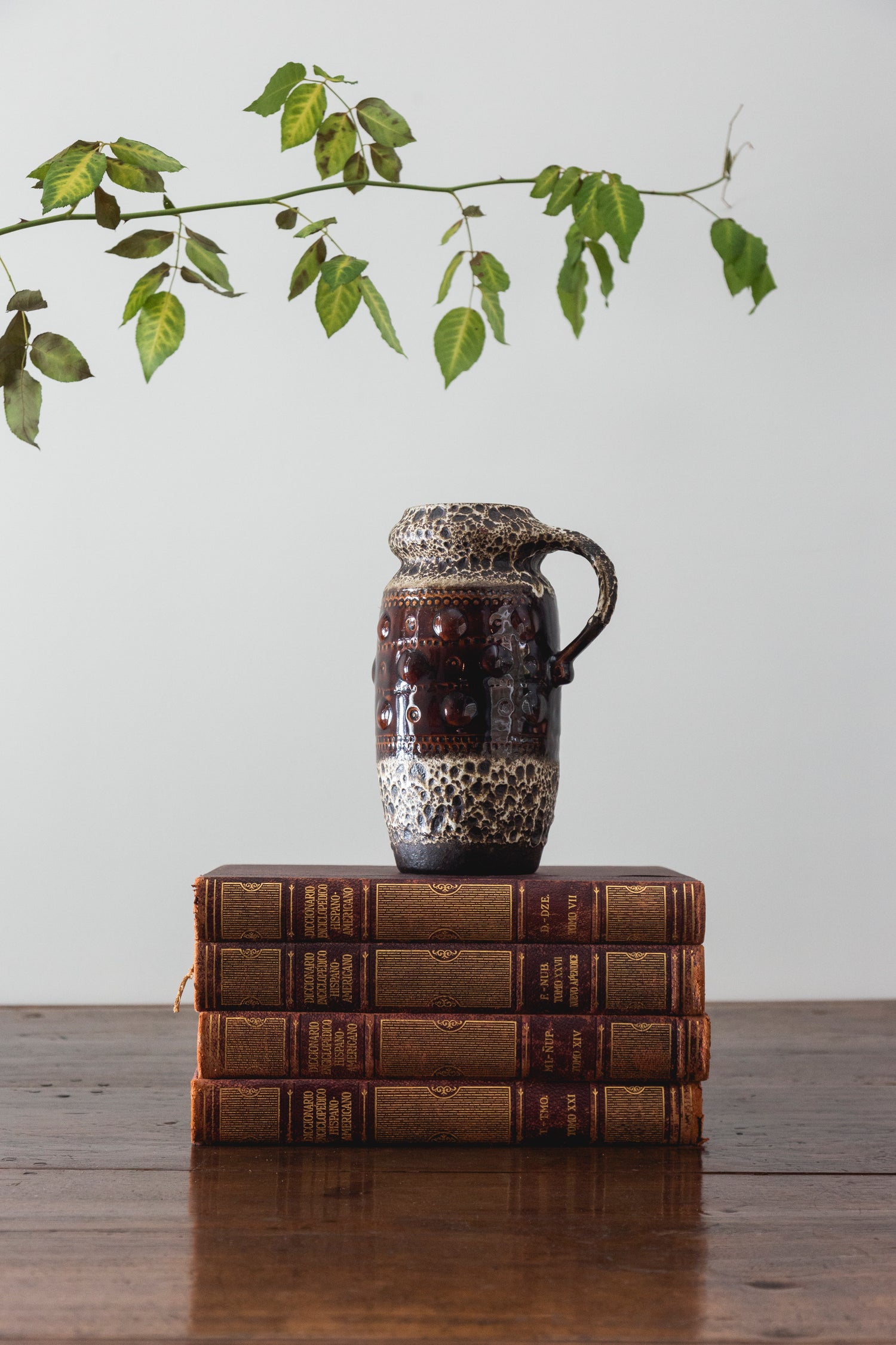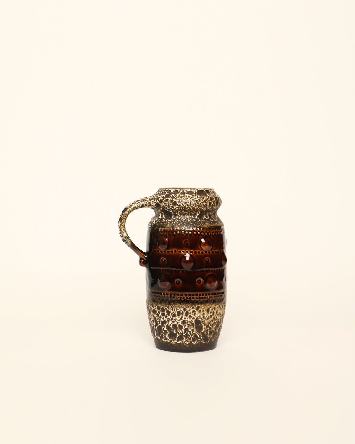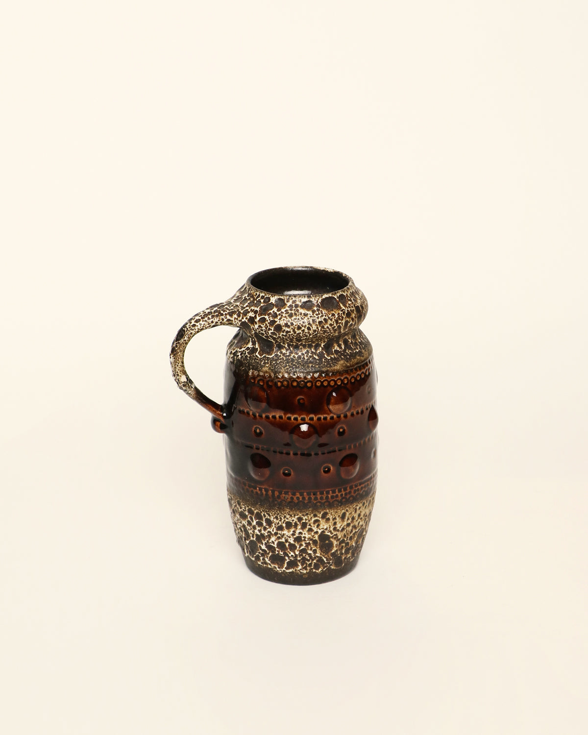 Jarra europea modernista de principios de siglo XX de cerámica en tonos marrones con textura.