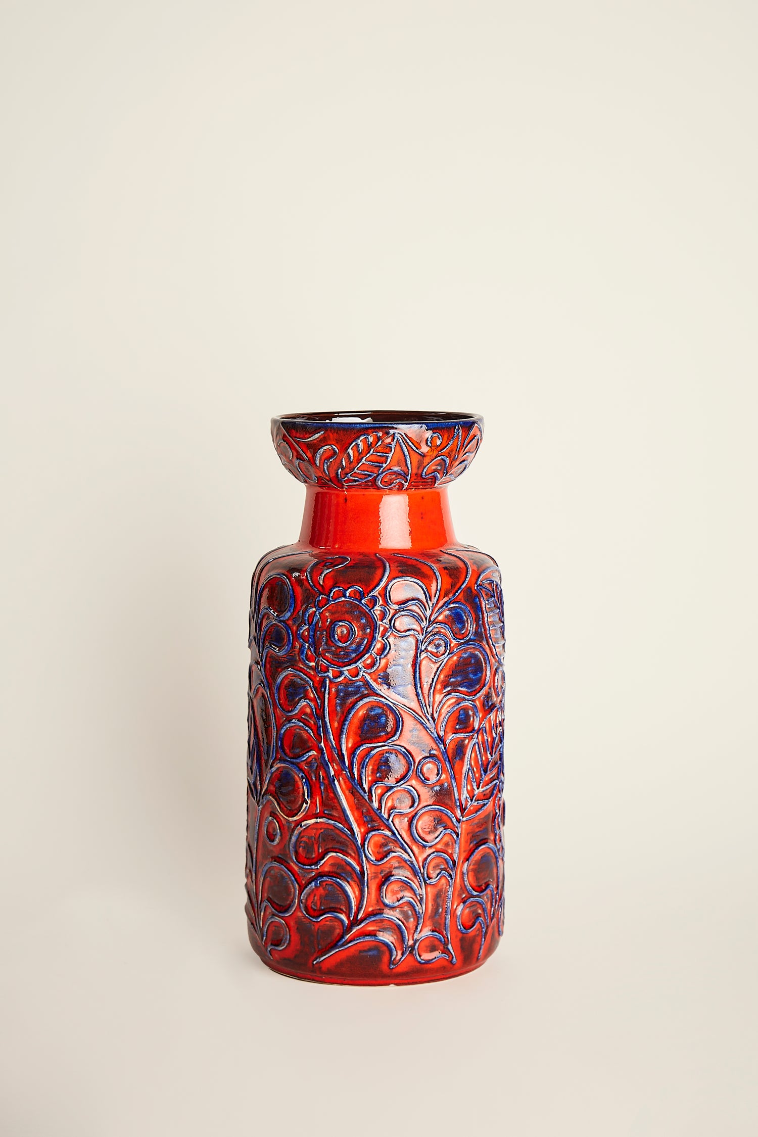 Jarrón azul y rojo alto