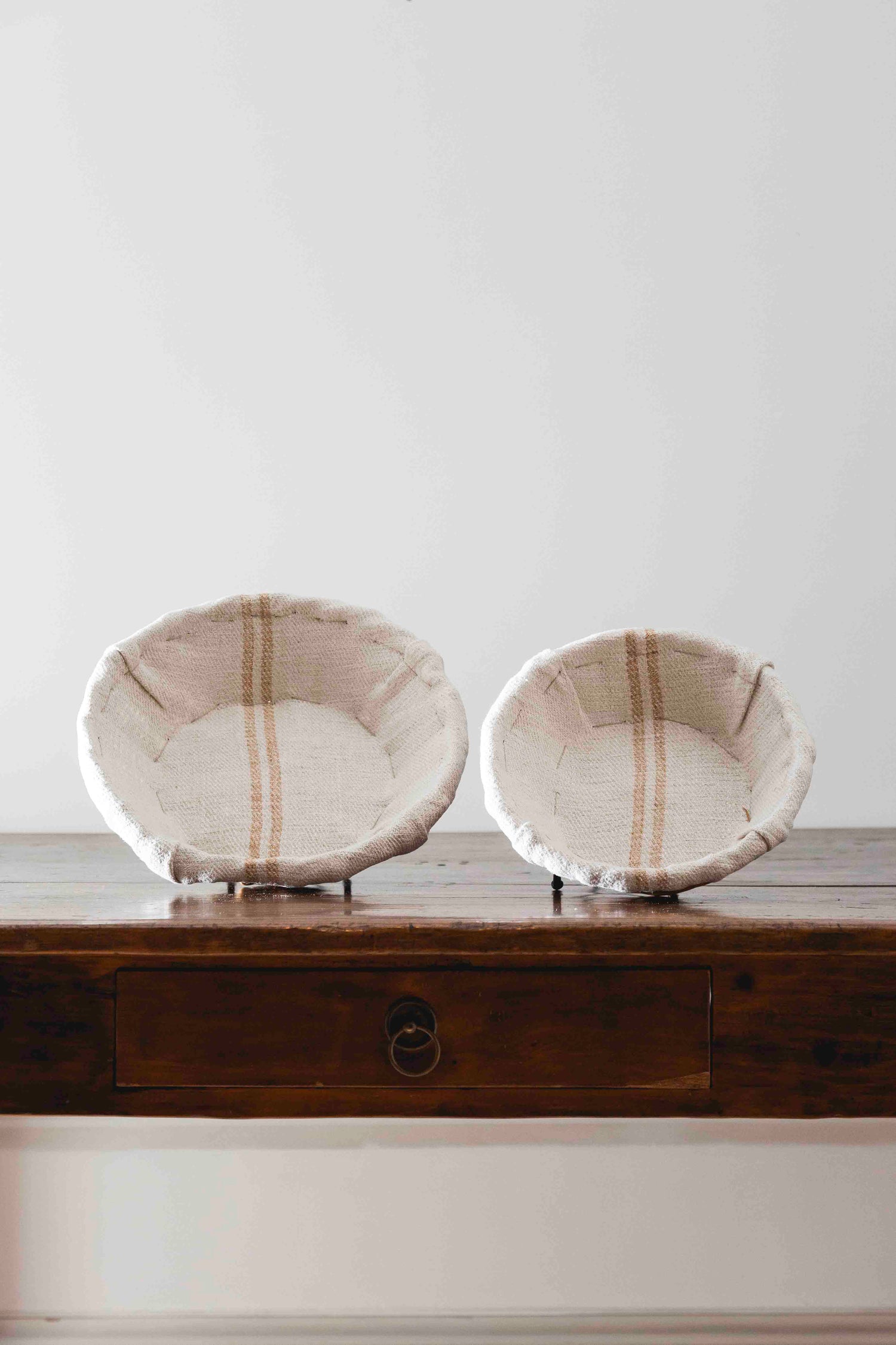 Panera grande de mimbre con tela de yute de rayas mostaza