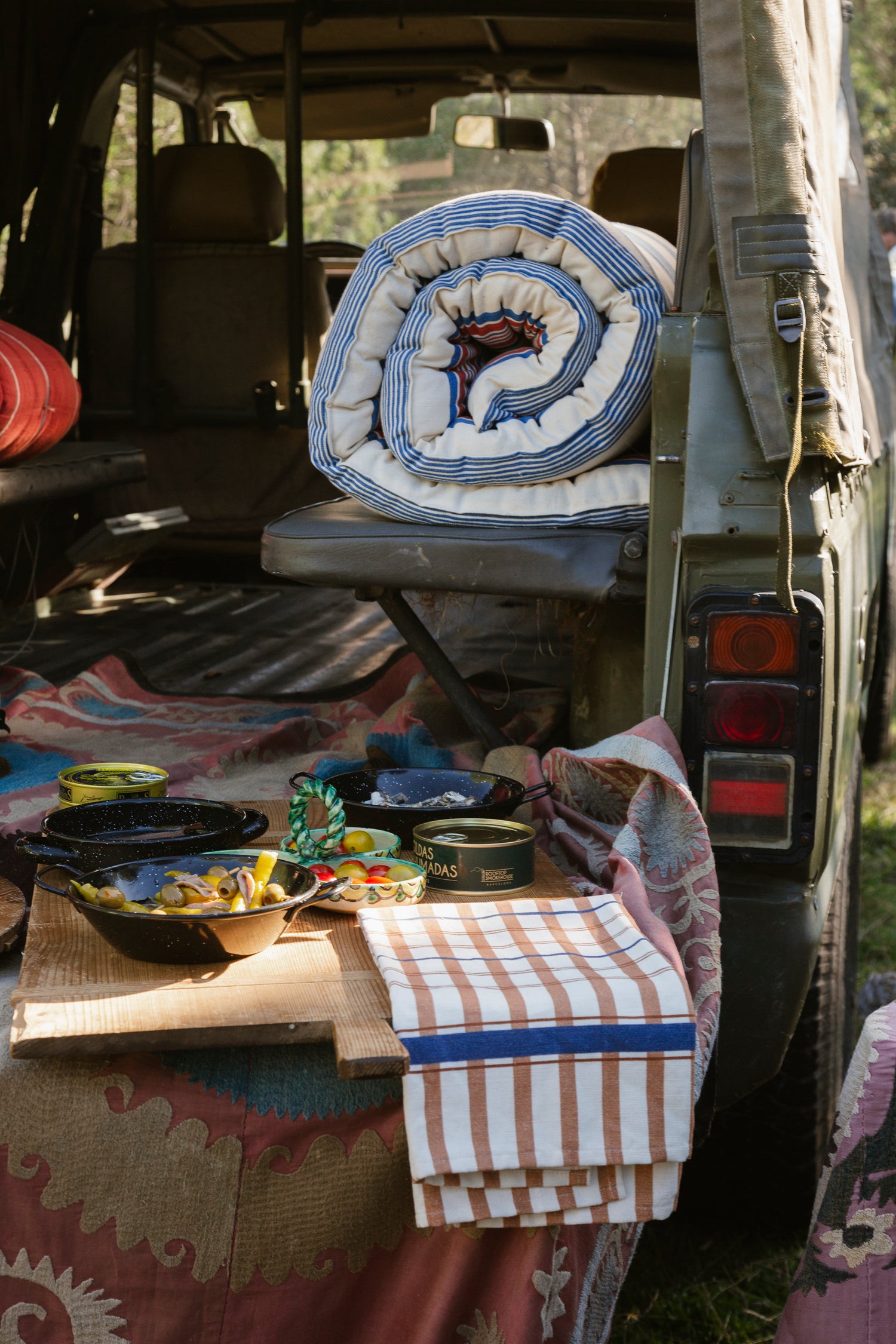 Trapo de cocina superversátil con dibujo de rayas. Un diseño tradicional pero funky con estampado en marrones y azules que no puede faltar en cualquier cocina. Confeccionado en España exclusivamente para Isita en lino y algodón.