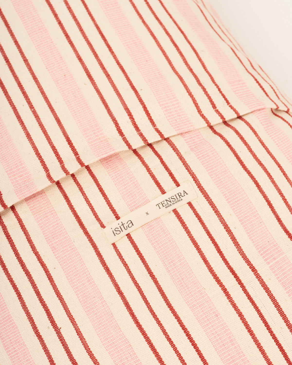 Tensira ha producido una colección textil desde almohadones y edredones hasta ropa de mesa en exclusiva para Isita, con colores y estampados alegres.
