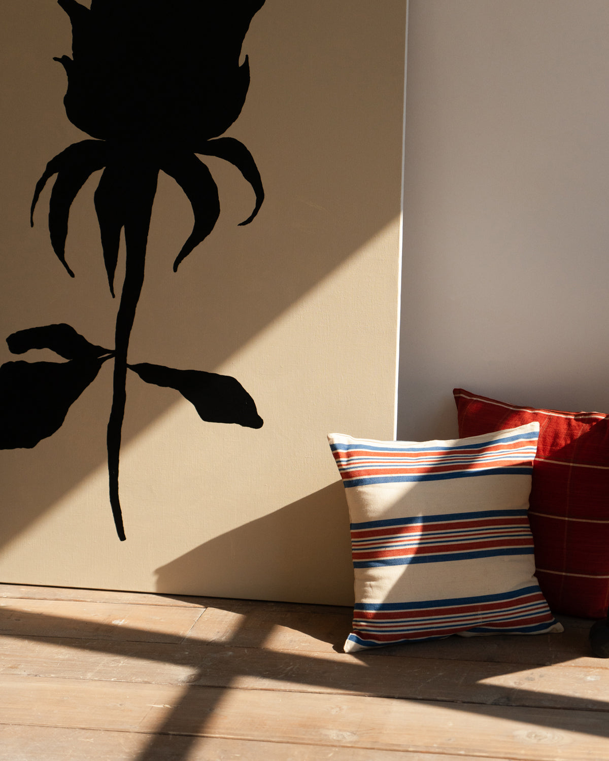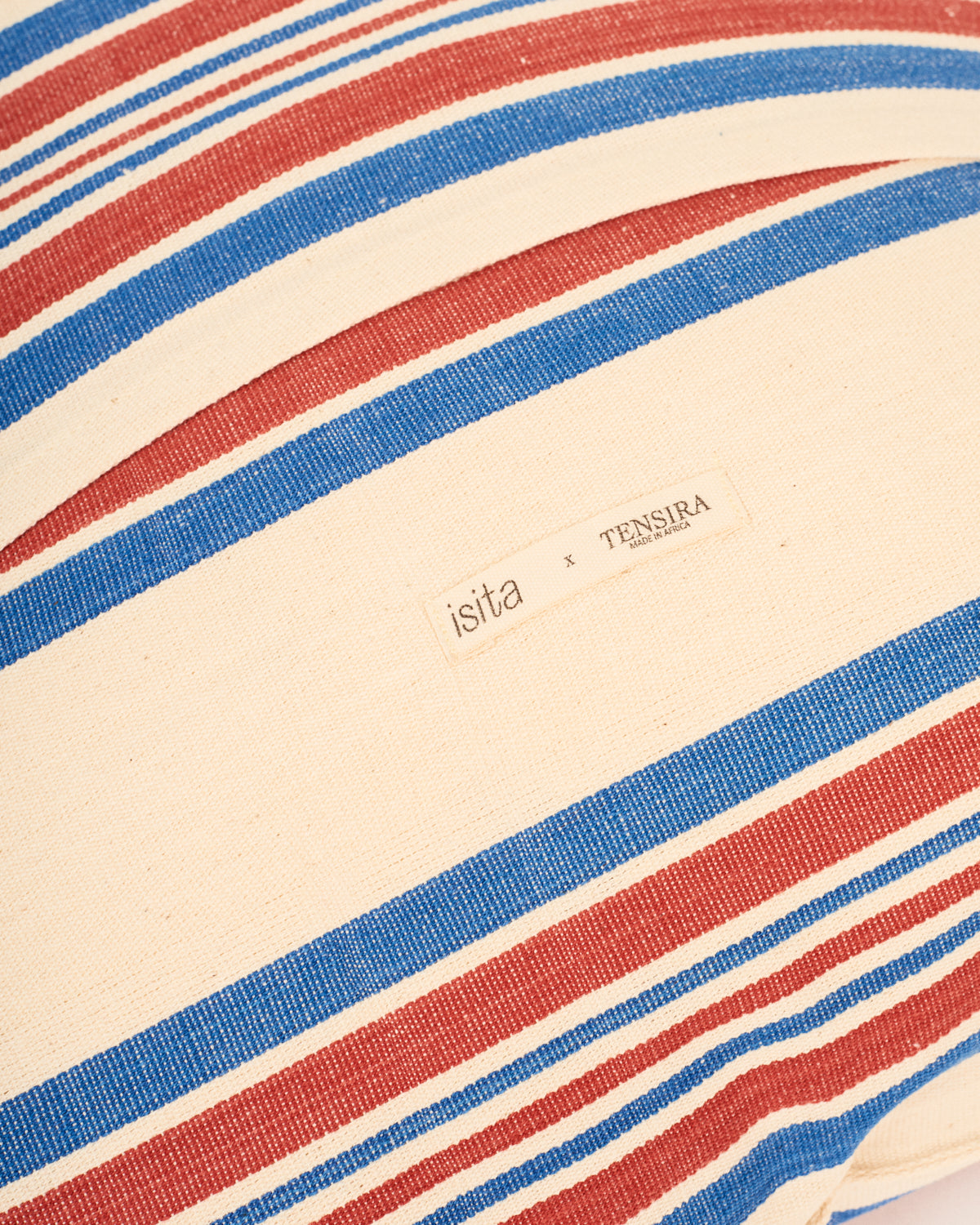 Tensira ha producido una colección textil desde almohadones y edredones hasta ropa de mesa en exclusiva para Isita, con colores y estampados alegres.