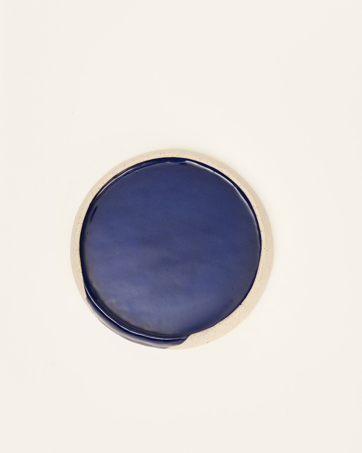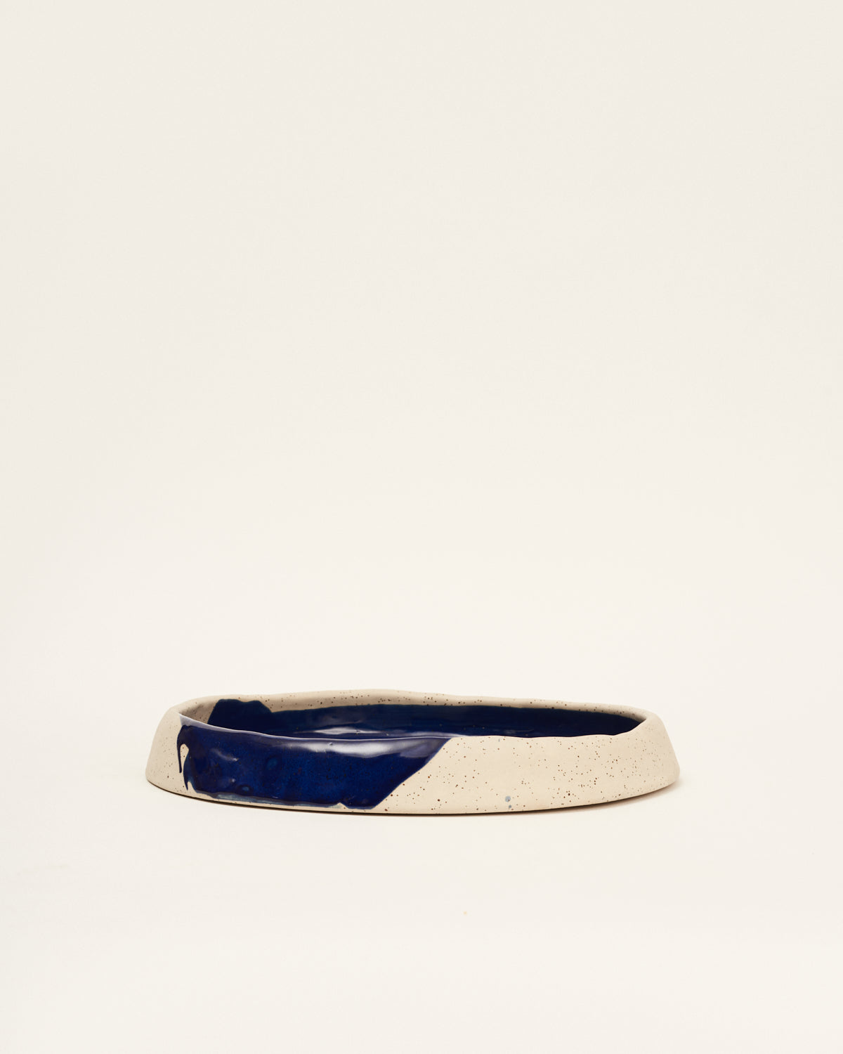 Bandeja azul glossy combinada con beige mate. Cerámica artesanal fabricada y pintada a mano en Madrid, España. La arcilla es un gres porcelánico con chamota procedente de Alemania y los esmaltes son formulados en su taller utilizando óxidos, pigmentos y minerales. Cada pieza es única.