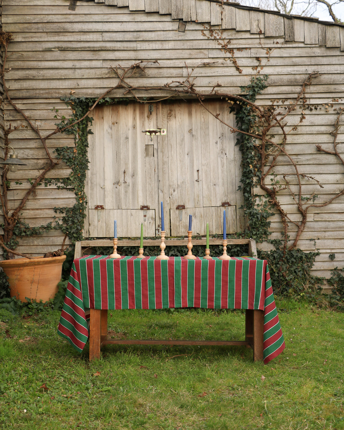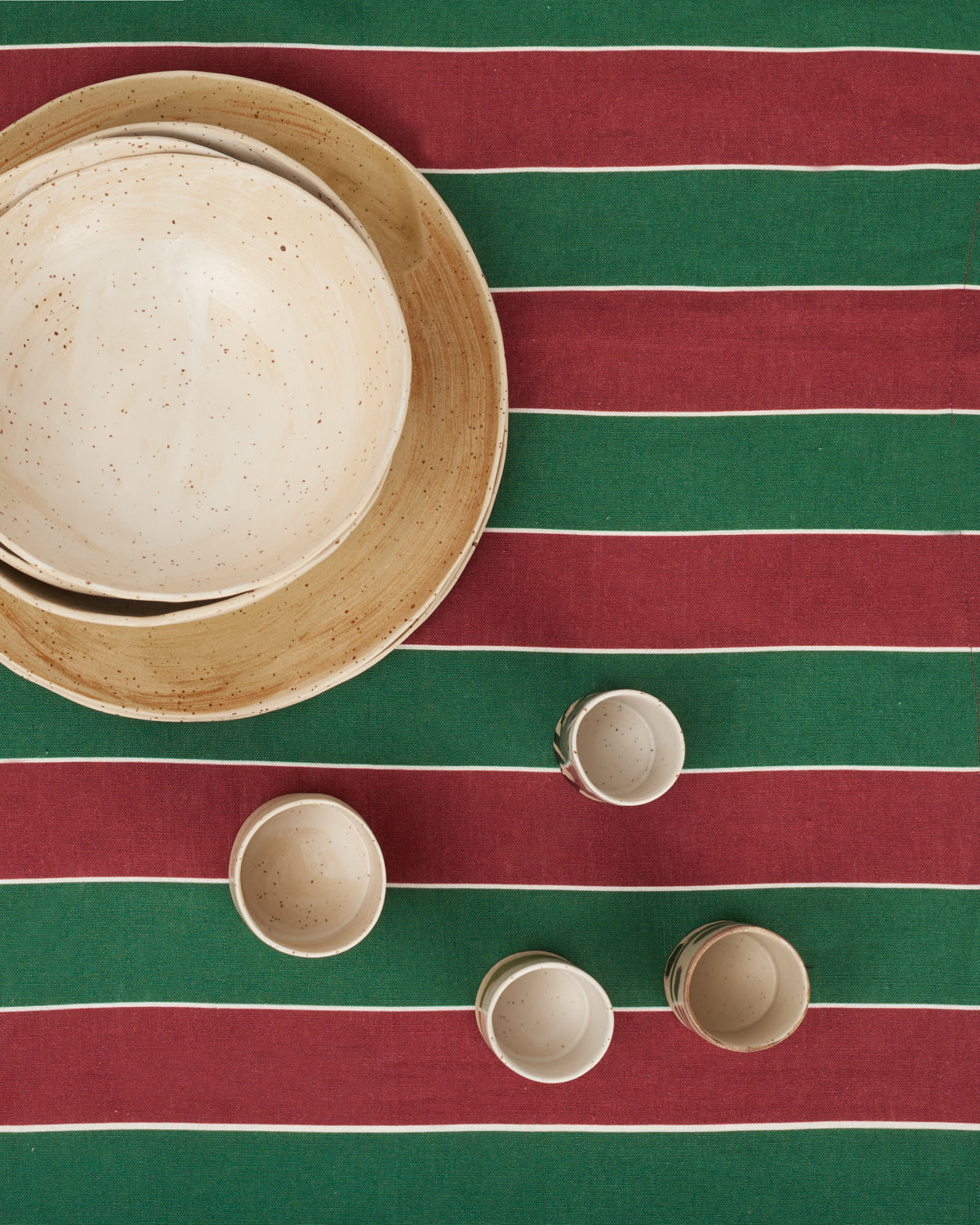 Mantel en lino 100% con estampado de rayas. Diseñado por nosotros y confeccionado en España exclusivamente para Isita con fibras de la mejor calidad. Inspirado en la medina de Marrakech, está adornado con rayas de colores en verde y guinda, lo que aporta diversión y movimiento a tus comidas. Su armonía cromática representa el equilibrio perfecto entre tradición y modernidad. También puedes mezclarlo con los diferentes productos de mesa disponibles para conseguir tu combinación ideal.
