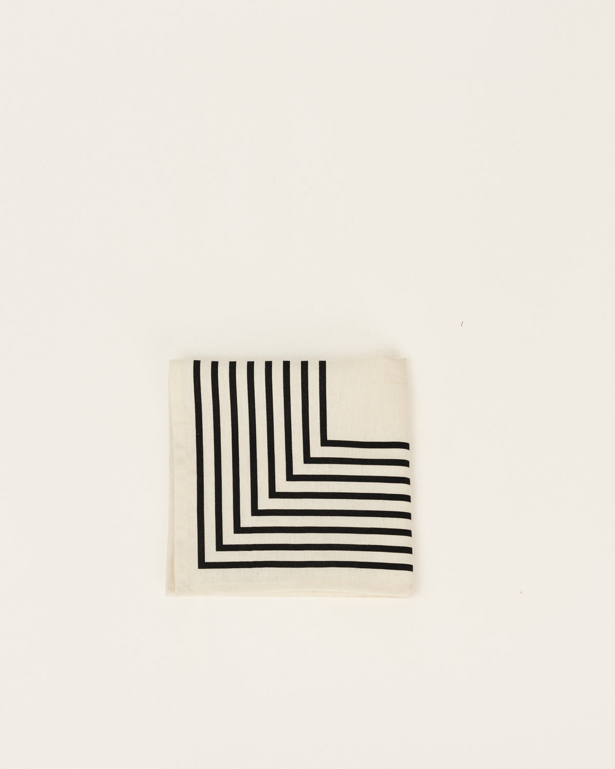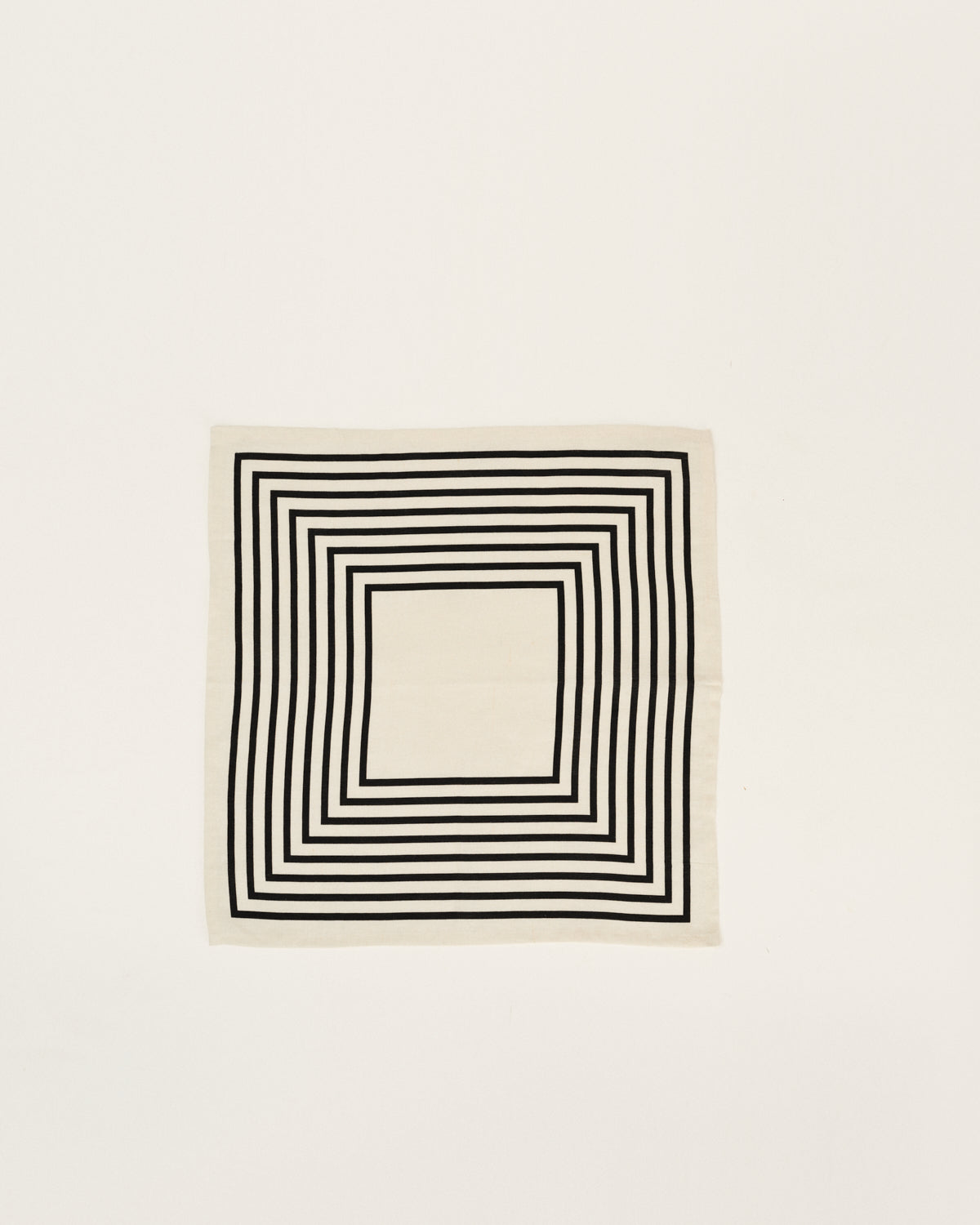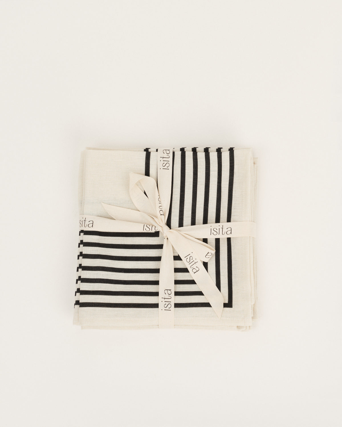 Pack de seis servilletas en lino 100% con estampado geométrico. Diseñado por nosotros y confeccionada en España exclusivamente para Isita con fibras de la mejor calidad. Sobre un fondo blanco roto, la servilleta está adornada con formas geométricas negras hacia el centro. Su sencillez se adapta a cualquier ocasión. Combínala con nuestra colección de cristal y nuestro mantel de lirios.